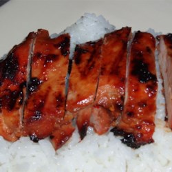 Dark chicken thigh meat is cooked in a rich soy sauce, garlic, and vinegar mixture, then tossed on the grill until crisp. Serve over rice.
